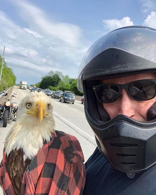 Dandon Miller was on his way home from a motorcycle show in Philadelphia when he spotted the injured bird in the road. He wrapped the bird in his flannel jacket and waited on the side of the road until a bird rescue organization was contacted.